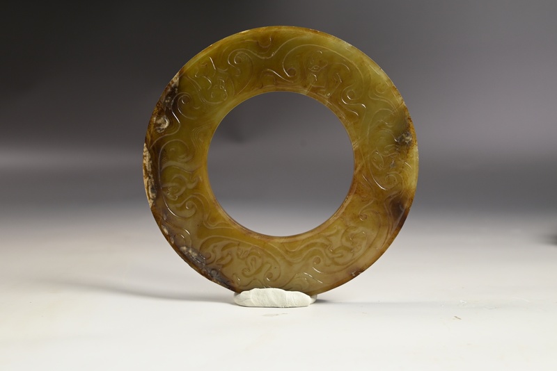 青黄玉黑沁灰皮螭龙纹玉璧
