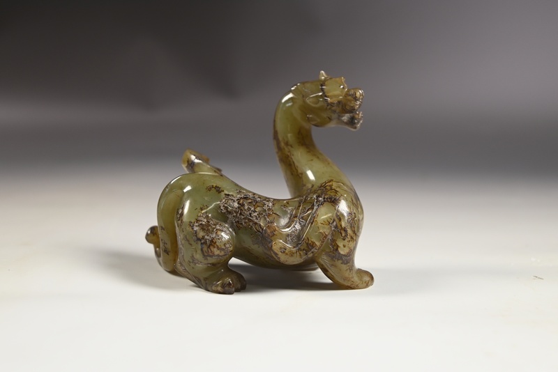 青白玉红沁长颈瑞兽
