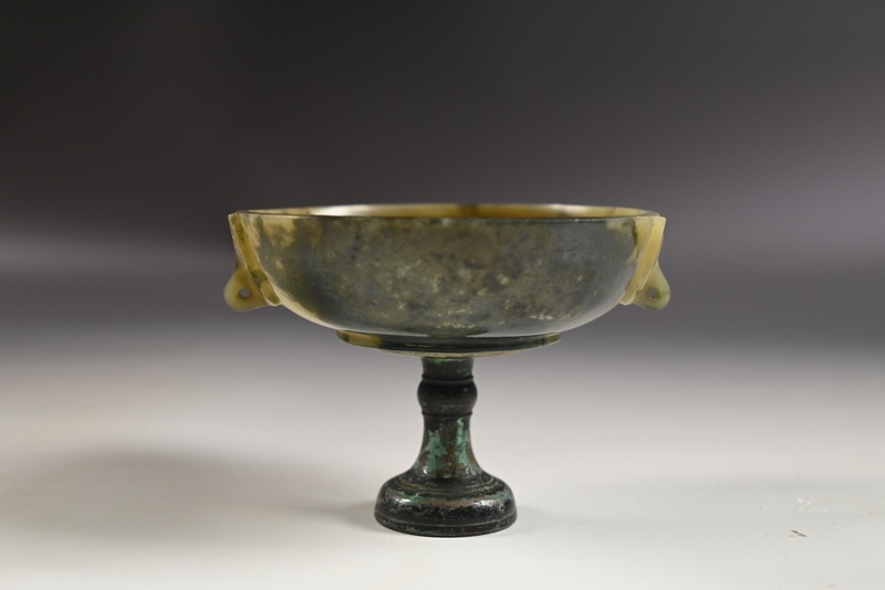 白玉黑沁高足灯盏