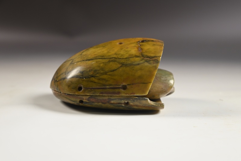 白玉黑红沁鹌鹑盒