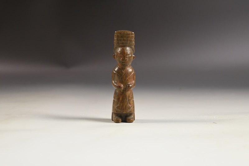 白玉红沁高冠玉人